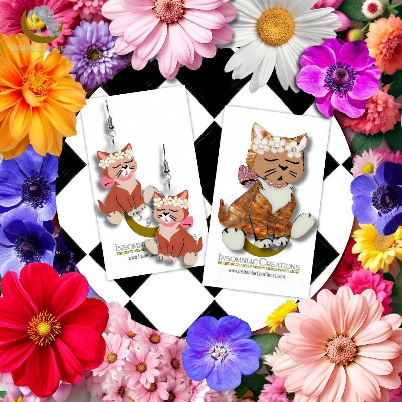 Alice's adorable furry companion is available as Earrings or a Brooch