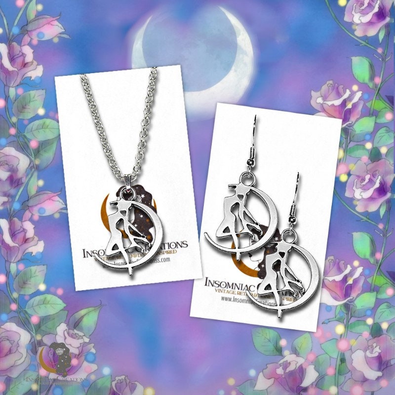Stainless Steel Sailor Moon Silhouette earrings or necklace or Set (1 pair of Earrings and 1 Necklace)
